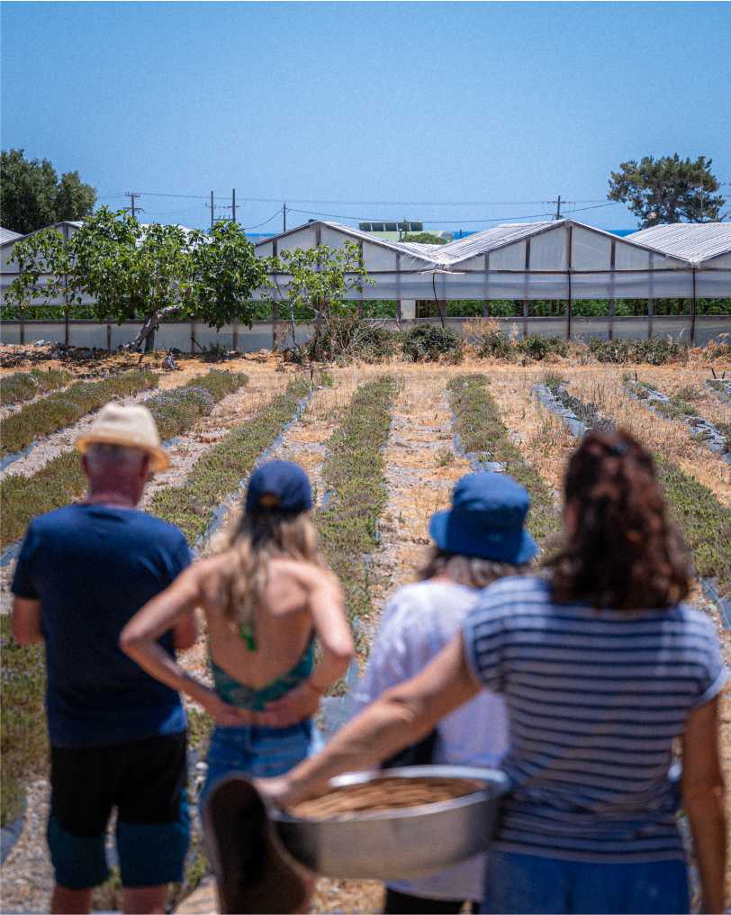 Today, Aspras Terra welcomes visitors and professionals from around the world seeking to explore the authentic agricultural and cultural identity of Crete. Guests are introduced to both traditional and contemporary cultivation methods through guided walks across gardens, olive groves, areas dedicated to aromatic plants, and a former greenhouse facility, gaining a comprehensive understanding of the evolution of local agriculture and the island’s rich biodiversity.